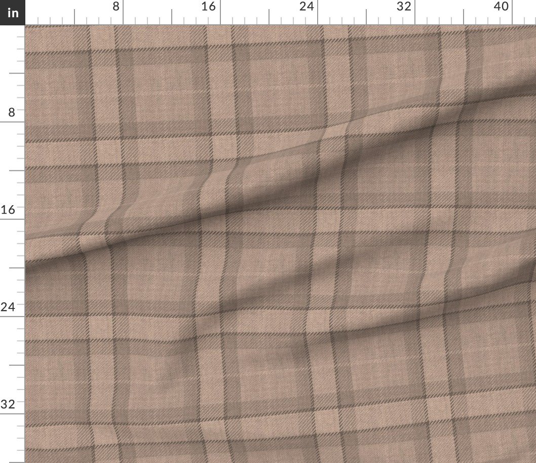 A soft fawn brown and sand-toned tartan plaid with a wool-style texture, ideal for rustic, traditional, or vintage-themed sewing.