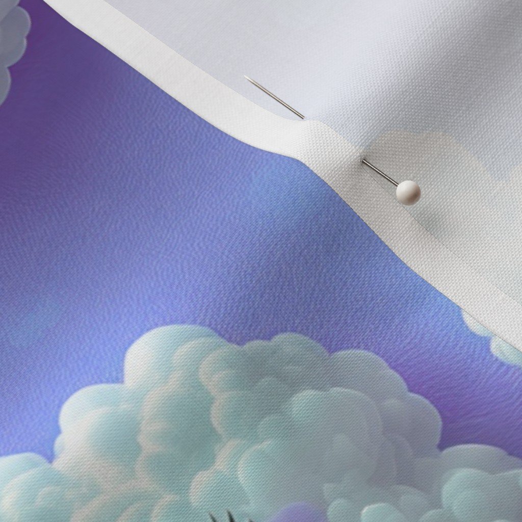 Fabric in Fluffy Happy Clouds on Soft Lavender Background for Kids Room Decor Fabric