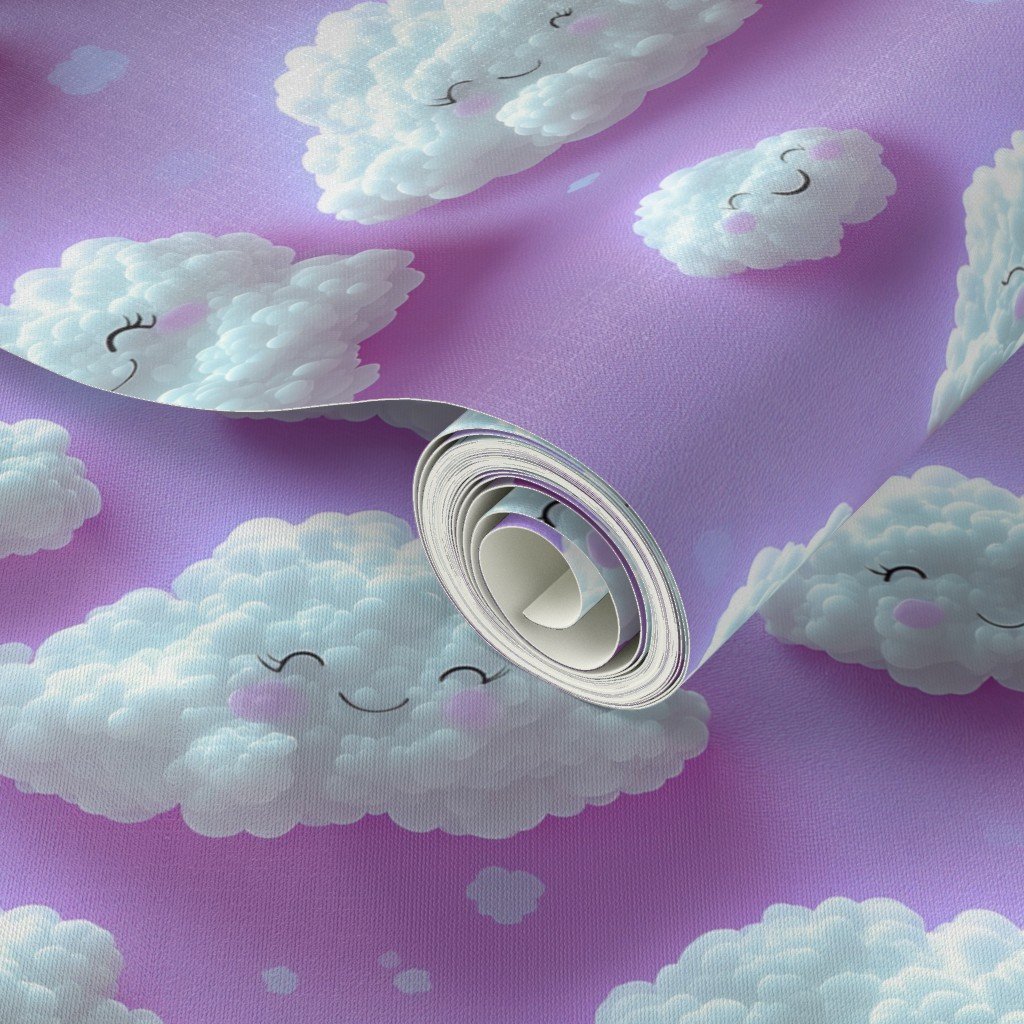 Be the first to review “Fluffy Happy Clouds on Soft Pink Lavender Background for Kids Room Decor Wallpaper”