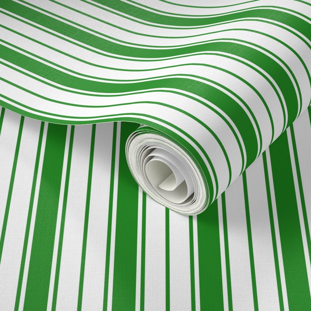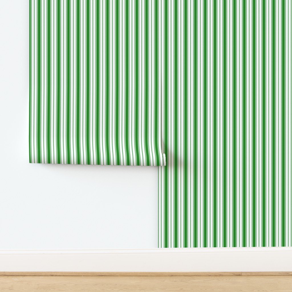 A rich forest green ticking stripe inspired by Versailles, adding a refined, classic touch to fabrics, decor, or accessories with French elegance.