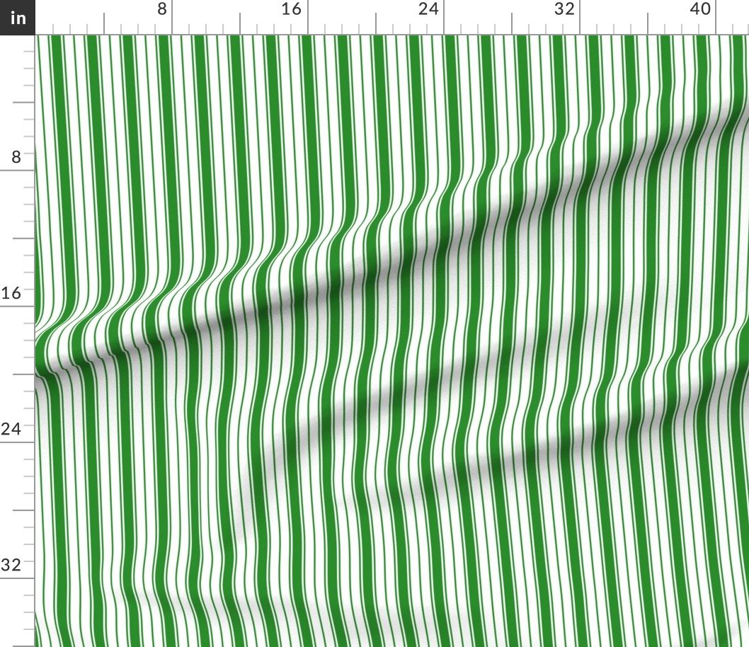 A rich forest green ticking stripe inspired by Versailles, adding a refined, classic touch to fabrics, decor, or accessories with French elegance.