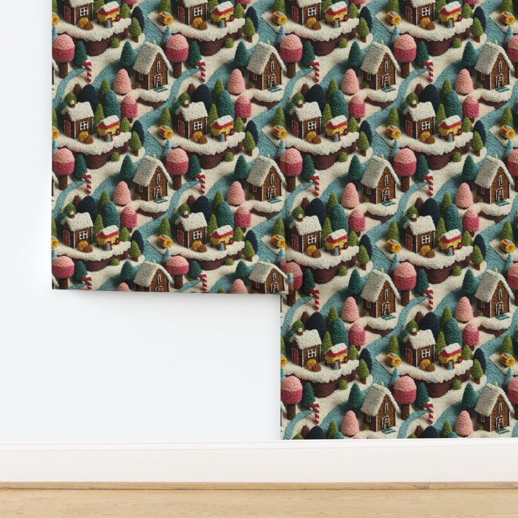 A heartwarming crocheted village of gingerbread houses and peppermint paths comes to life in this playful Christmas Candy Land design. With rich browns, rosy pinks, and frosty greens, it adds handmade charm and winter sweetness to every creation.
