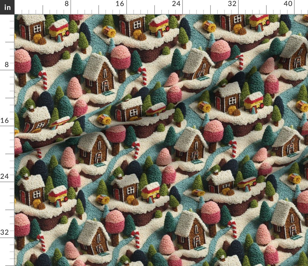 A heartwarming crocheted village of gingerbread houses and peppermint paths comes to life in this playful Christmas Candy Land design. With rich browns, rosy pinks, and frosty greens, it adds handmade charm and winter sweetness to every creation.