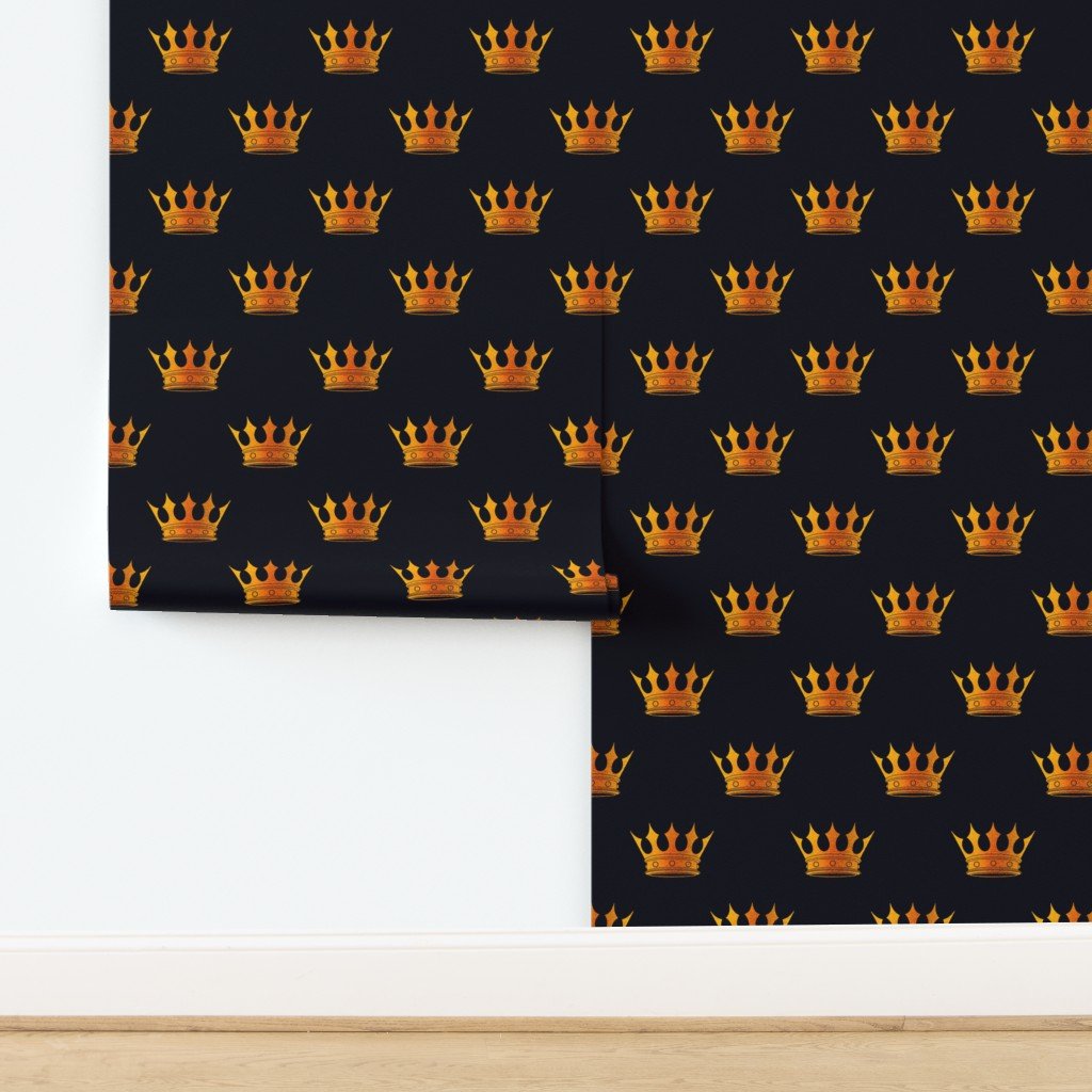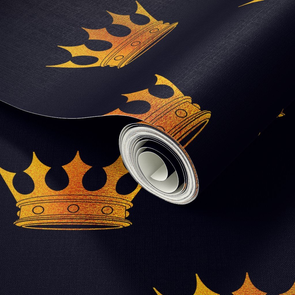 Heraldry Shields with Royal Crowns and Banners in Blue on White Wallpaper