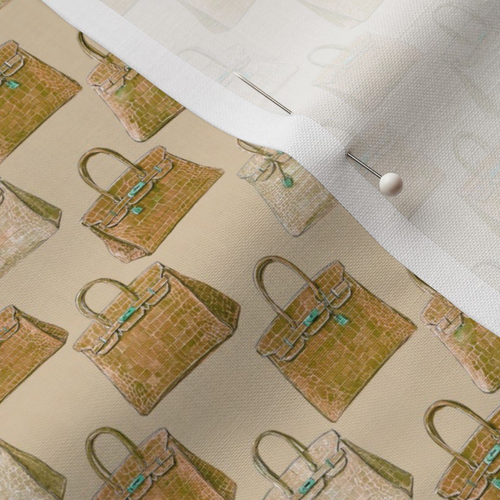 A refined smaller-scale version of the Golden Olive croc handbag pattern. Perfect for apparel, accessories, and more subtle wallpaper applications while maintaining the rich designer aesthetic.