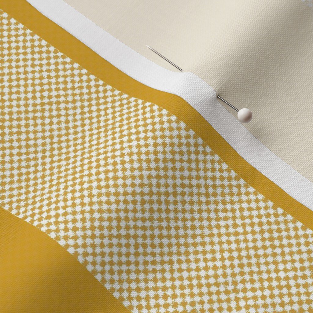 A goldenrod yellow upholstery fabric with decor stripes, perfect for adding a rustic and earthy touch to your home in the Wilderness SeriesSpecificationsFabric content: 100% CottonPrinted width: 42 inchesWeight: 4.4 oz/yd²Opacity: OpaqueConstruction: Plain WeaveShrinkage: 5-6% length x 2-3% widthThread count: 120Performance RatingsWyzenbeek (cotton duck abradant): 30,000 double rubs (ASTM D1457-13)Martindale: 20,000 cycles (ASTM 4966-22)Crocking dry (1 severe – 5 no color transfer): Exceeds 3 (AATCC TM 8)Crocking wet (1 severe – 5 no color transfer): Exceeds 3.5 (AATCC TM 8)Pilling (1 severe – 5 none): 4.5Note or Country of OriginCountry: Woven in IndonesiaPrinting: Digitally printed in the USA with water-based inksFabric backing: The backside of the fabric will be unprinted
