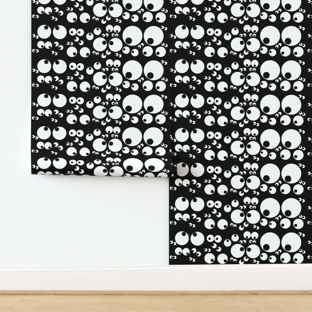 Oodles of googlies goo goo eyes all peeping on a black background