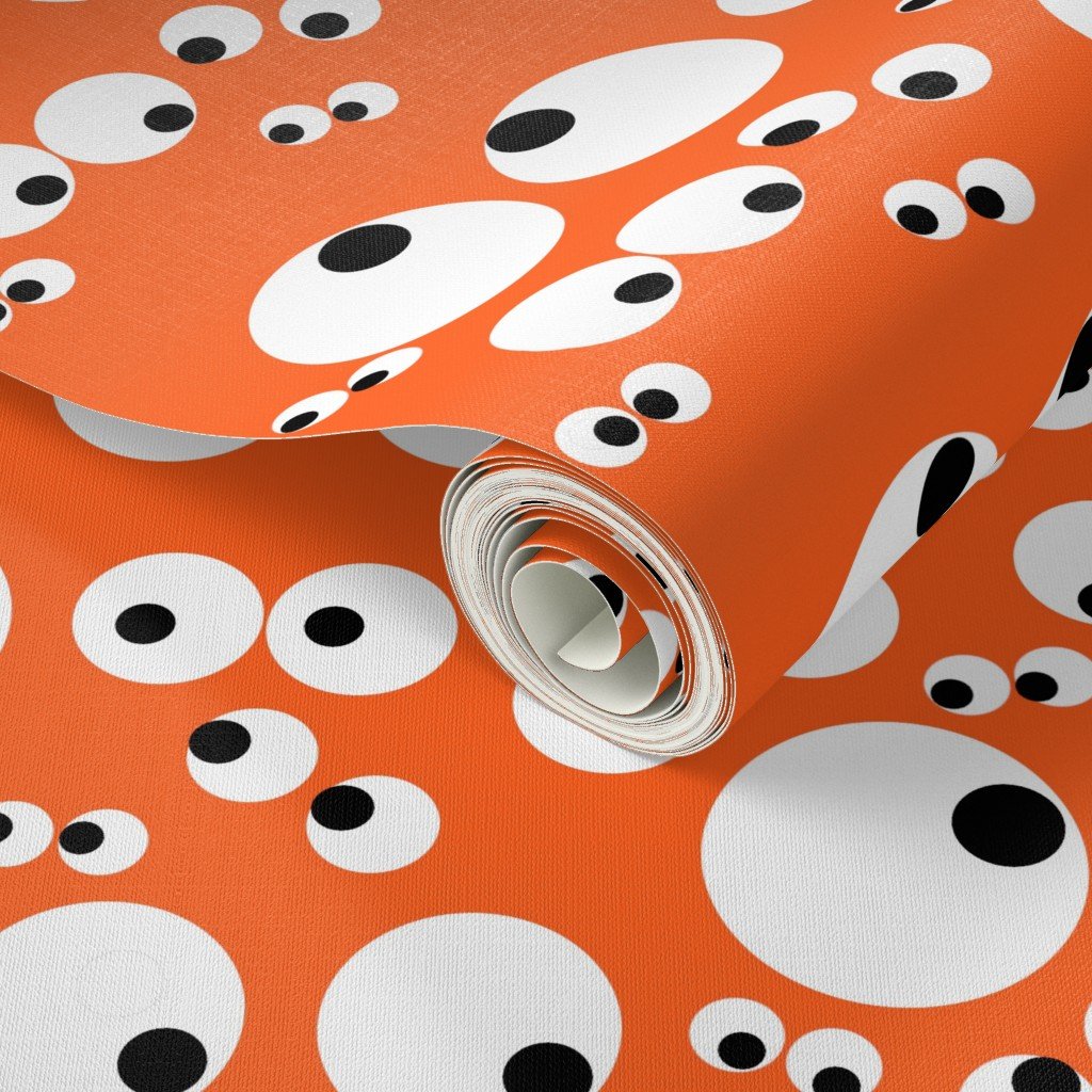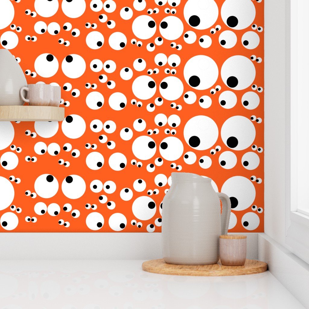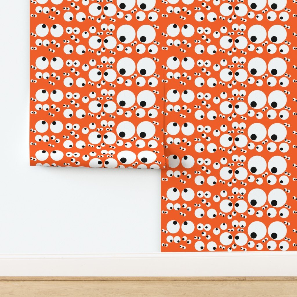 Oodles of googlies goo goo eyes all peeping on a neon orange background
