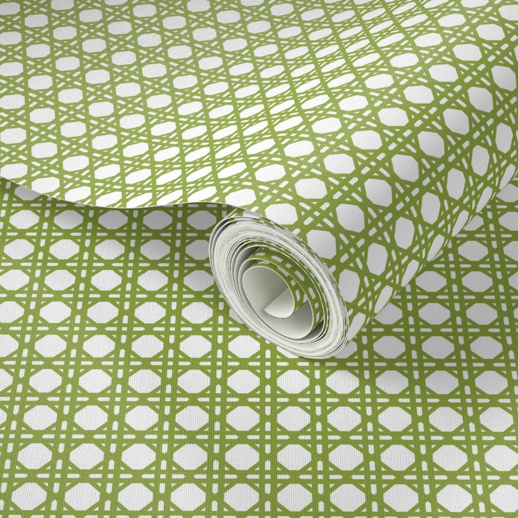 Woven rattan in grass green on white in symmetrical geometric shapes for French Provincial Spring coordinates
