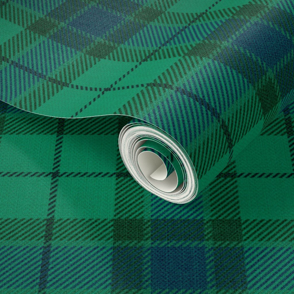 Green and Blue Vintage Christmas Tartan Plaid Wallpaper