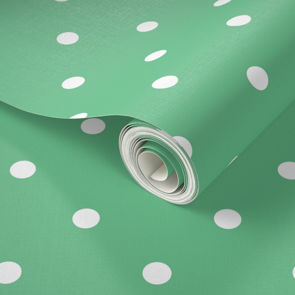 Punchy polka dots in snowy white on vintage Christmas green