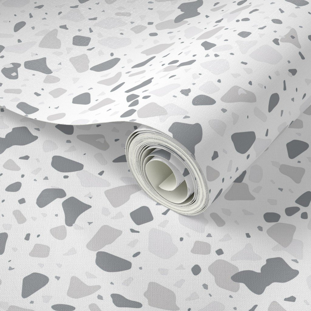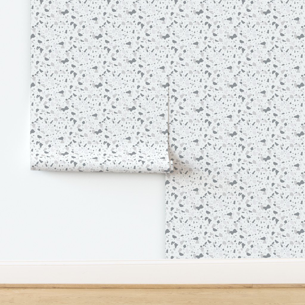 Inlaid chipped pieces of marble in varying shades of grey blue terazzo pattern