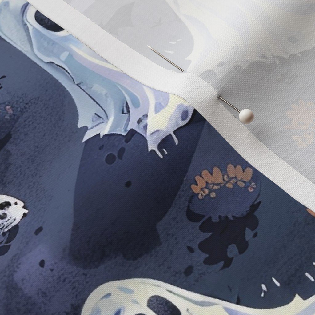 An eerie, isometric graveyard scene featuring neon yellow ghosts floating among gravestones and twisted trees. SpecificationsFabric content: 100% CottonPrinted width: 42 inchesWeight: 4.4 oz/yd²Opacity: OpaqueConstruction: Plain WeaveShrinkage: 5-6% length x 2-3% widthThread count: 120Performance RatingsWyzenbeek (cotton duck abradant): 30,000 double rubs (ASTM D1457-13)Martindale: 20,000 cycles (ASTM 4966-22)Crocking dry (1 severe – 5 no color transfer): Exceeds 3 (AATCC TM 8)Crocking wet (1 severe – 5 no color transfer): Exceeds 3.5 (AATCC TM 8)Pilling (1 severe – 5 none): 4.5Note or Country of OriginCountry: Woven in IndonesiaPrinting: Digitally printed in the USA with water-based inksFabric backing: The backside of the fabric will be unprinted