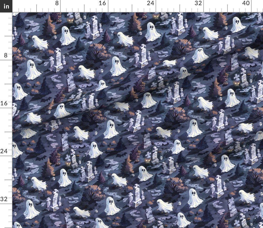 Fabric in Halloween Ghosts Floating in the Haunted Graveyard Fabric