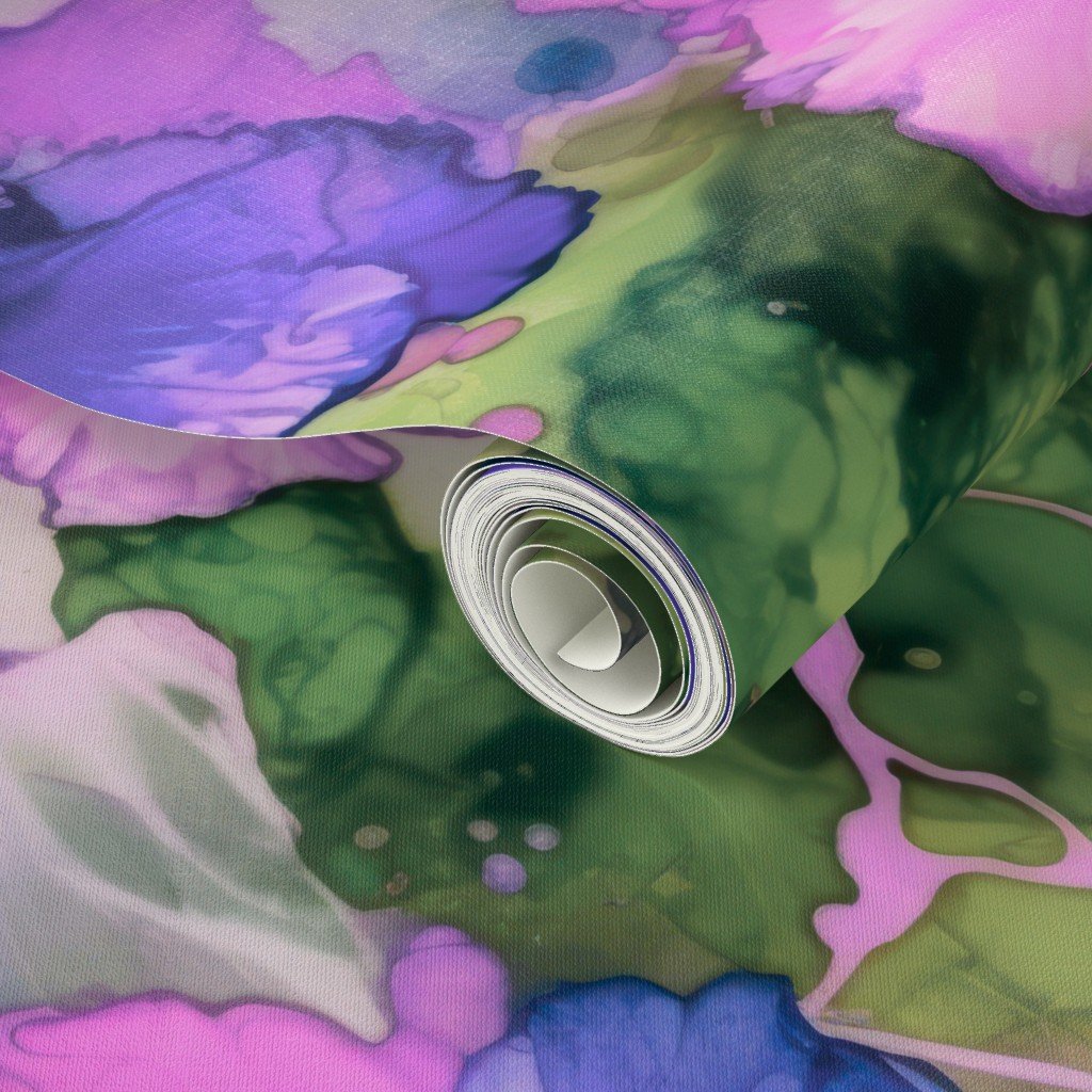 Swirls of lilac, pink and dark green with metallic gold accents in this Hawaiian style hibiscus alcohol ink pattern
