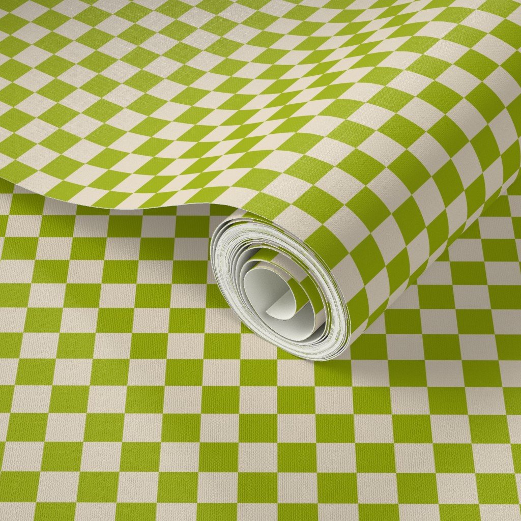 A 1/2 inch Heritage check in Sickly Chartreuse on Soft Linen Cream. The wider scale adds rhythm and presence, softened by a pale linen-toned neutral ground.