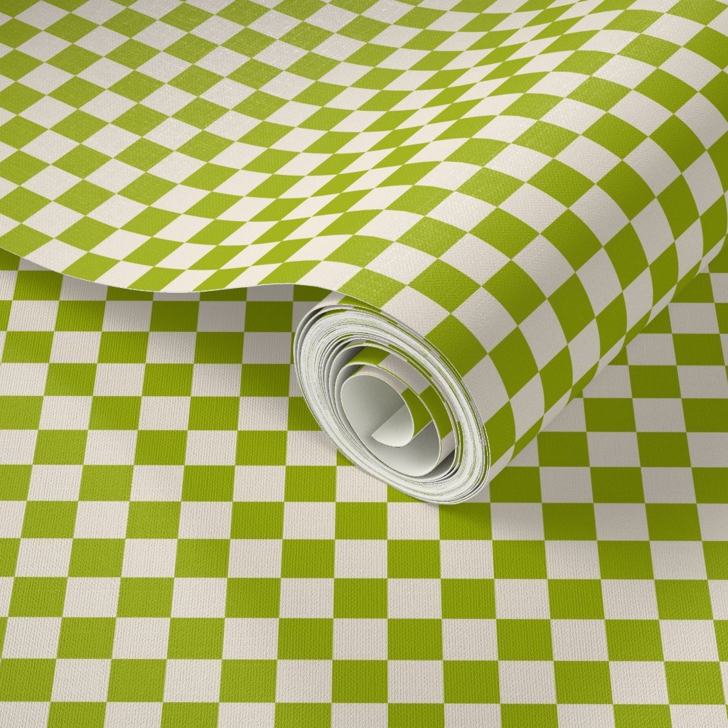 A bold Heritage check in Sickly Chartreuse set against Warm Oat Cream. The 1/2 inch scale creates confident structure while the soft cream backdrop tempers this sharp yellow-green tone.