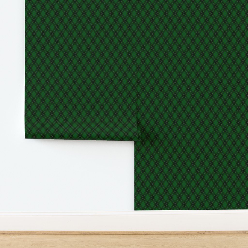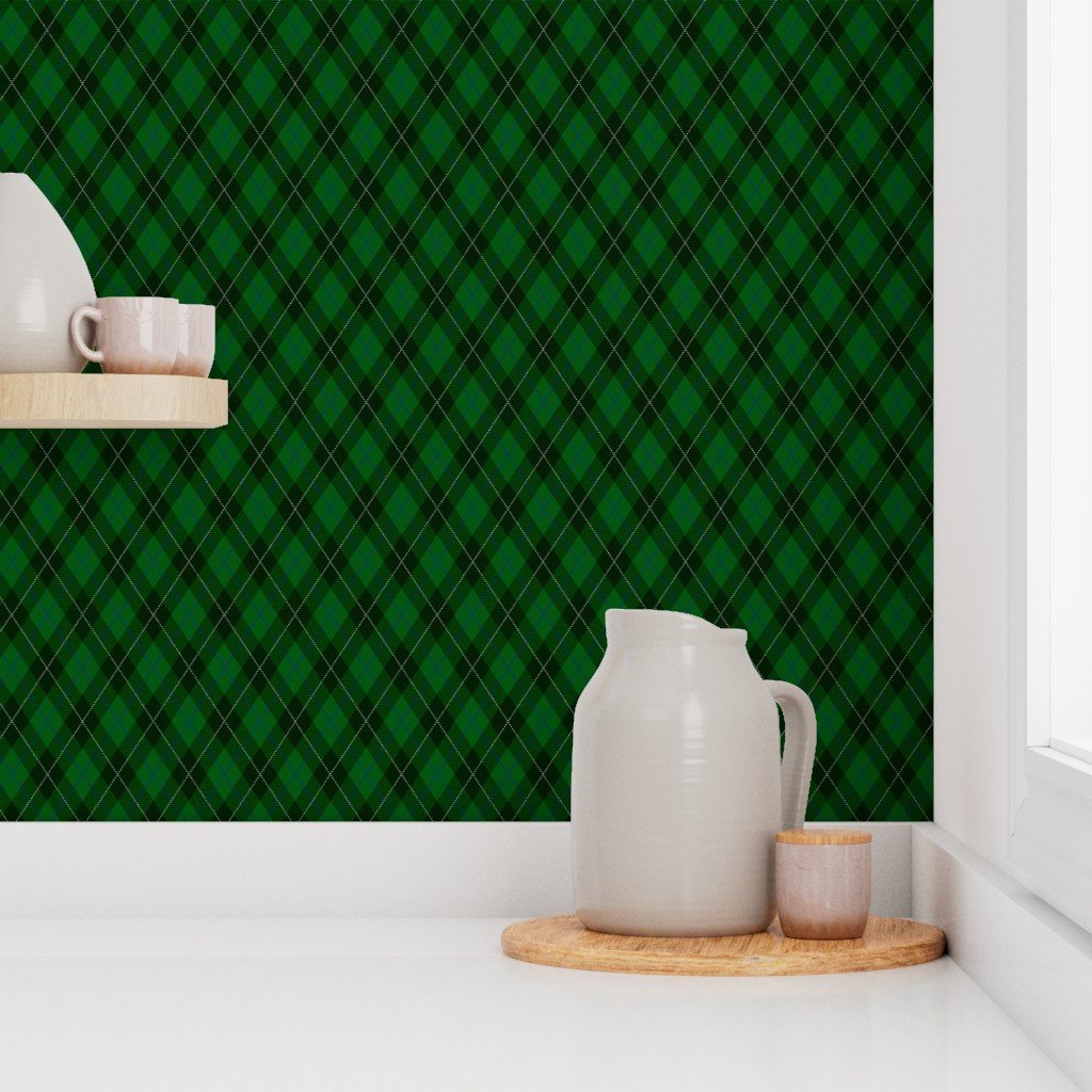 Hunter Green and Navy Blue Argyle Christmas Plaid with White Accents Wallpaper