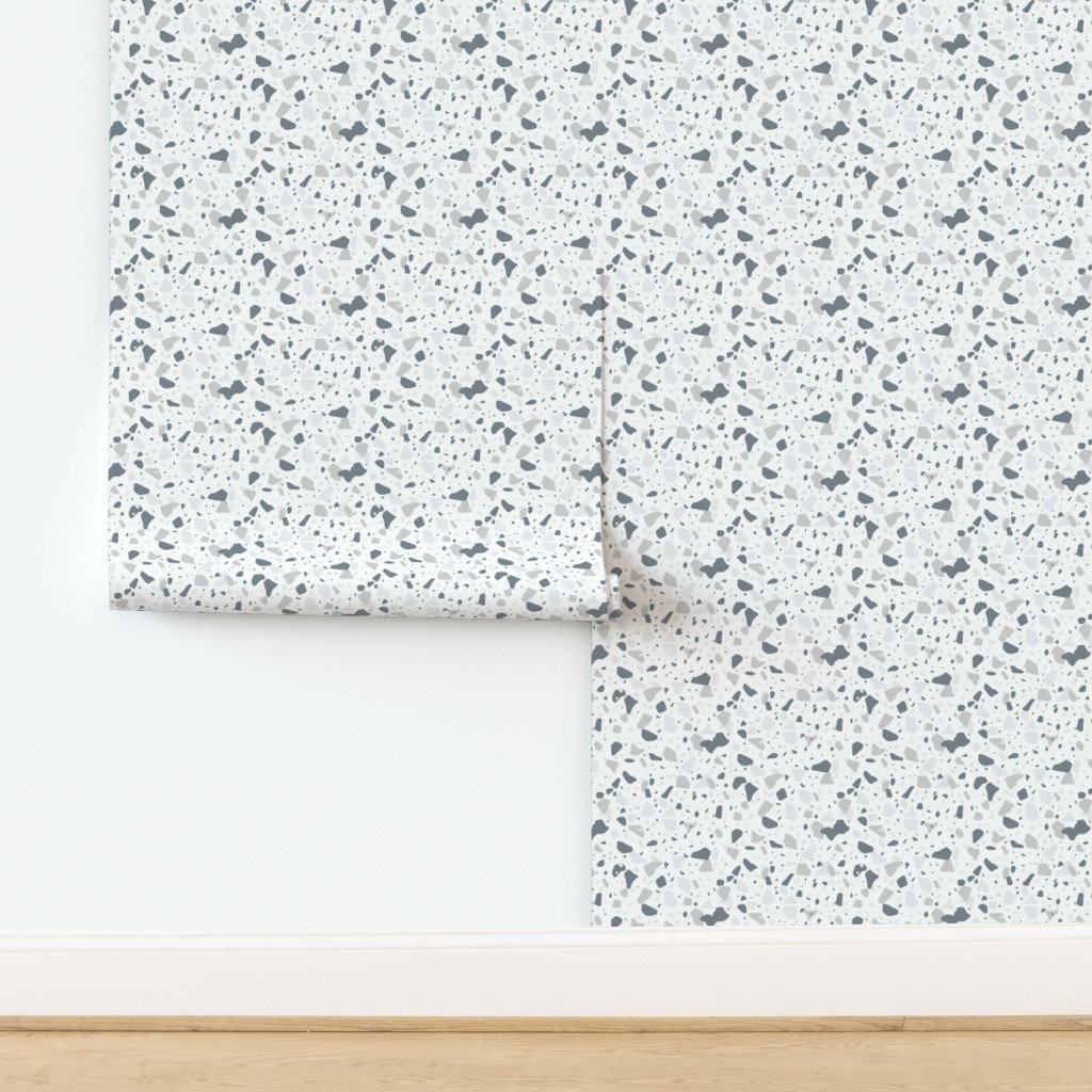 Inlaid chipped pieces of marble in varying shades of ice blue terazzo pattern