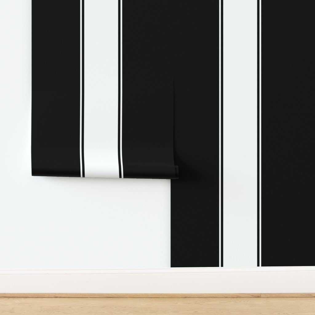 Huge jumbo width blanket stripes alternating with thinner lines in Onyx black and Optic white stripes