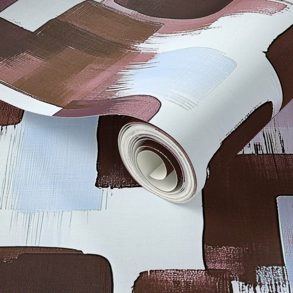 Be the first to review “Large Abstract Brushstroke Blocks in Brown Rosewood and Sky Blue Wallpaper”