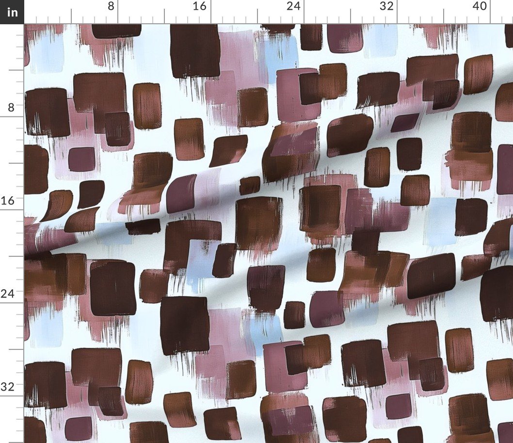 Brushstroke blocks in rich brown, rosewood, and sky blue create a striking abstract design, perfect for modern decor, fashion, or craft projects.