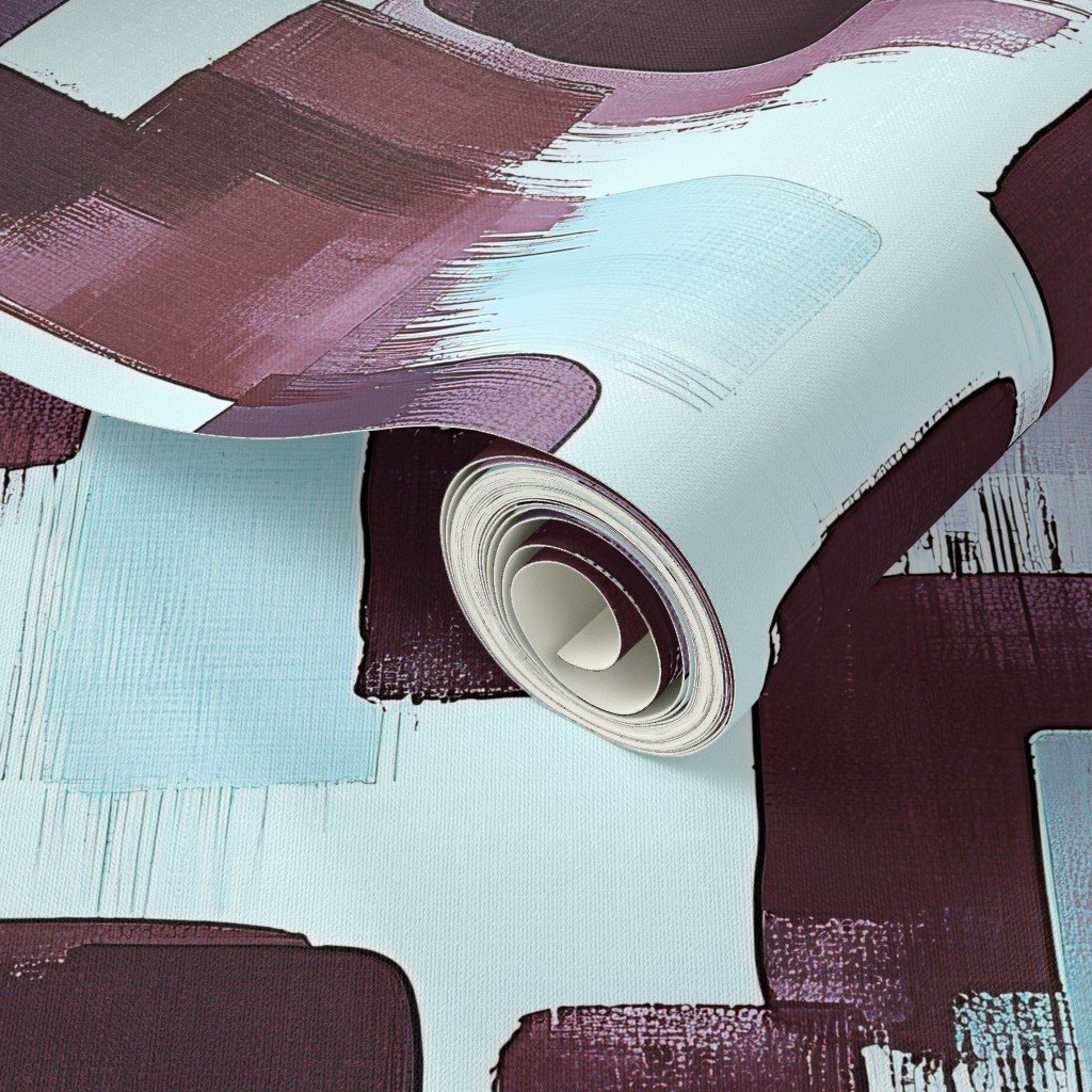 Be the first to review “Large Abstract Brushstroke Blocks in Burgundy Lavender and Soft Mint Wallpaper”