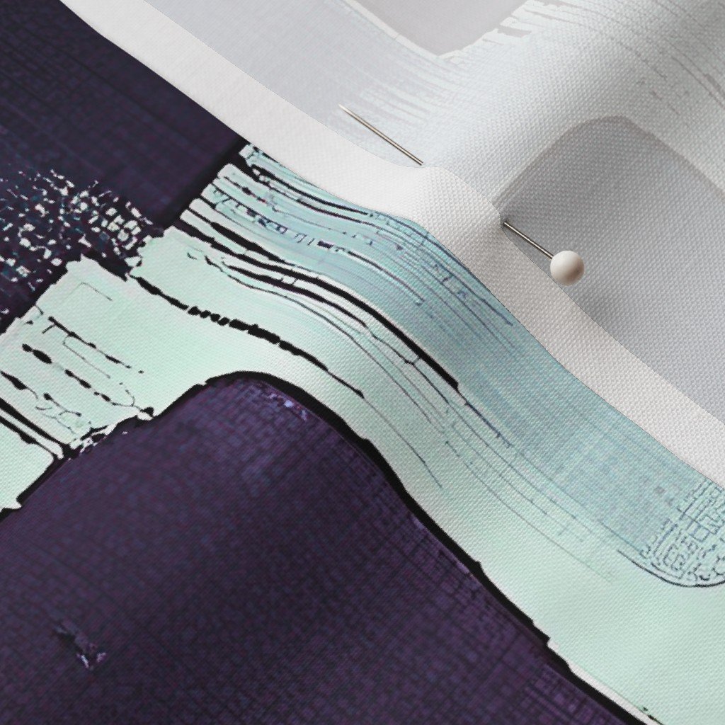 An abstract pattern with bold brushstroke blocks in deep purple and teal on a soft cream background, perfect for contemporary decor.
