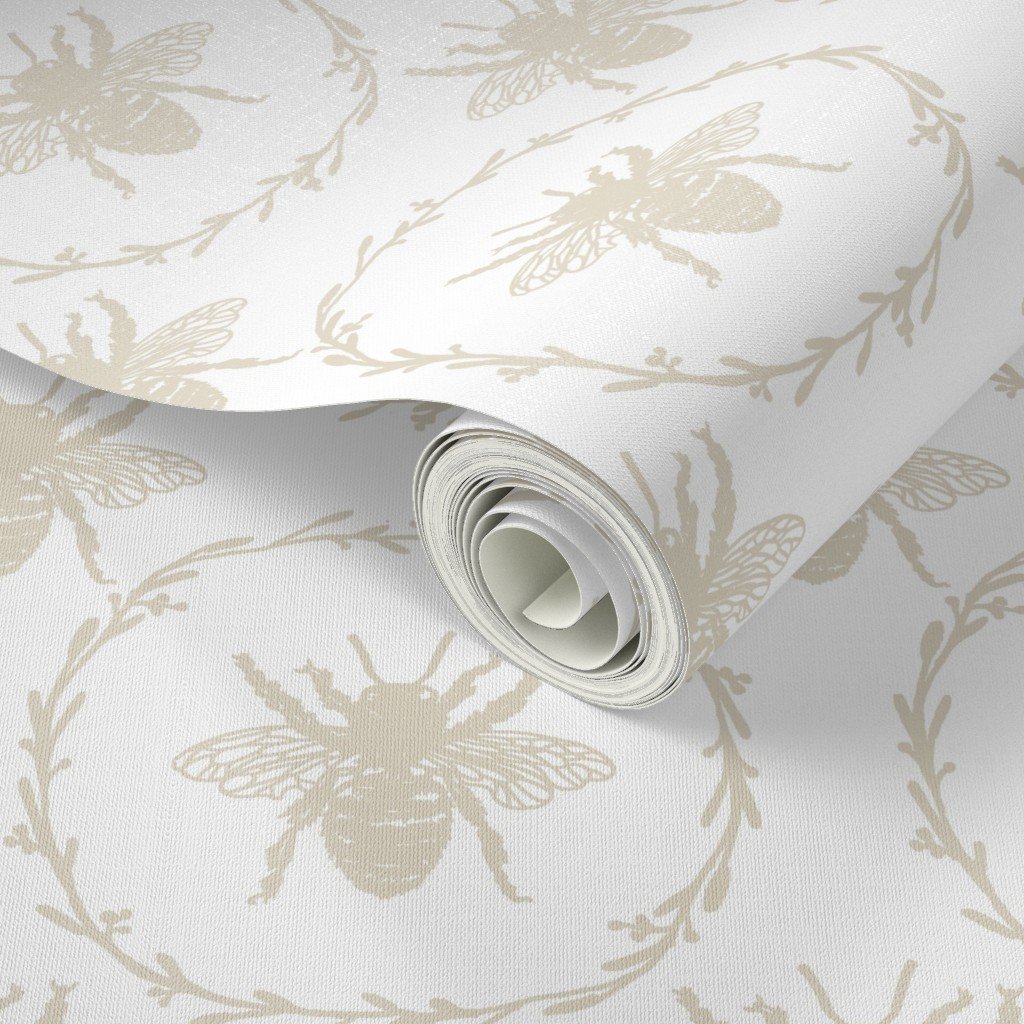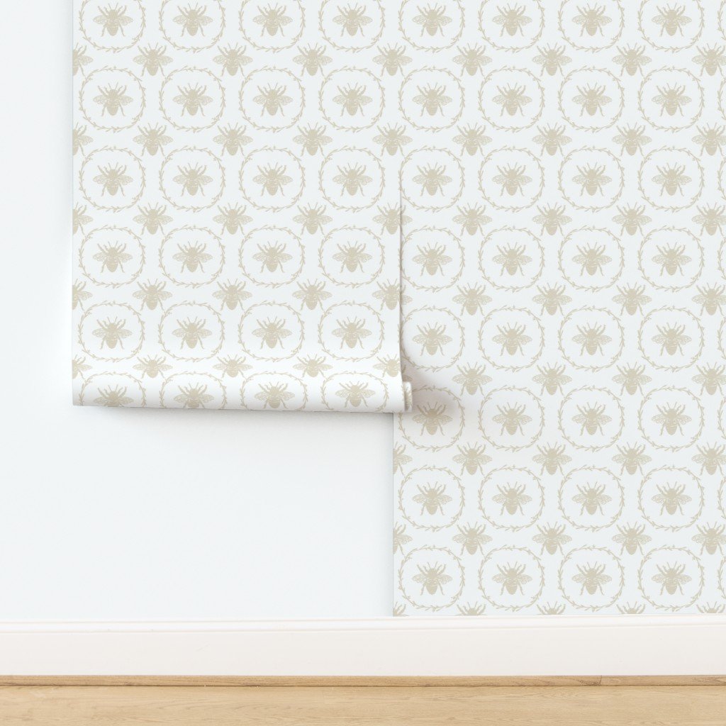 Be the first to review “Large French Provincial Bees in Laurel Wreaths in Cream on White Wallpaper”