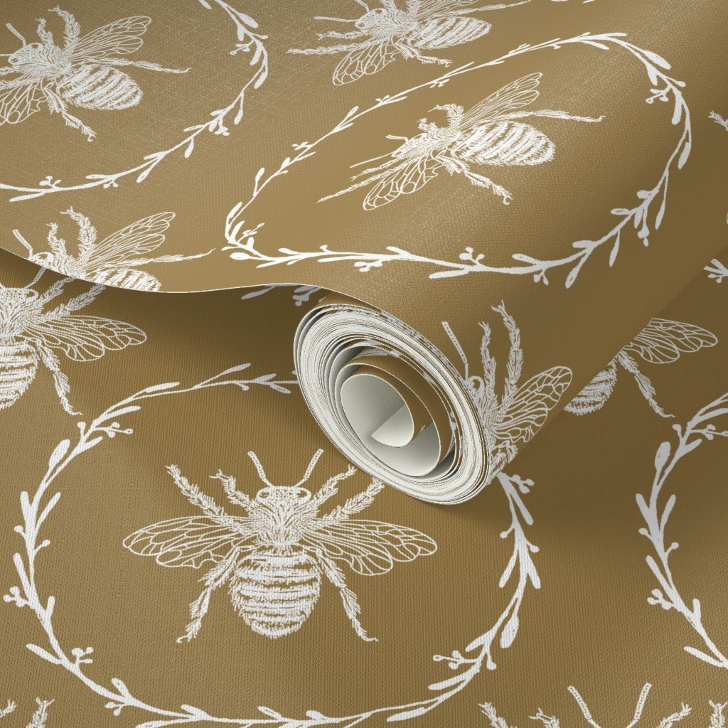 Be the first to review “Large French Provincial Bees in Laurel Wreaths in White on Tan Wallpaper”