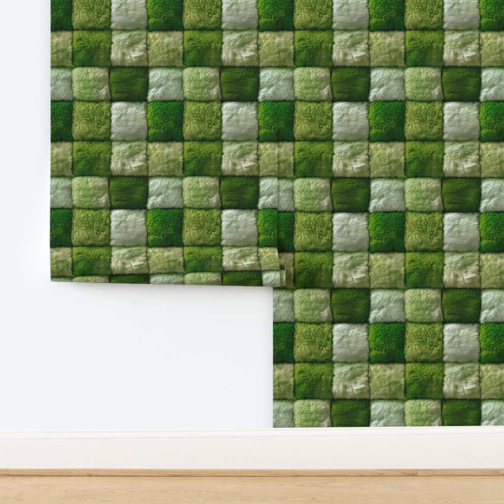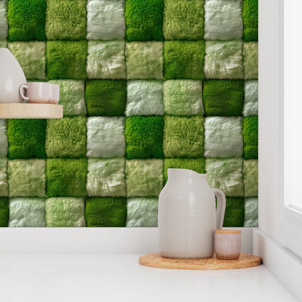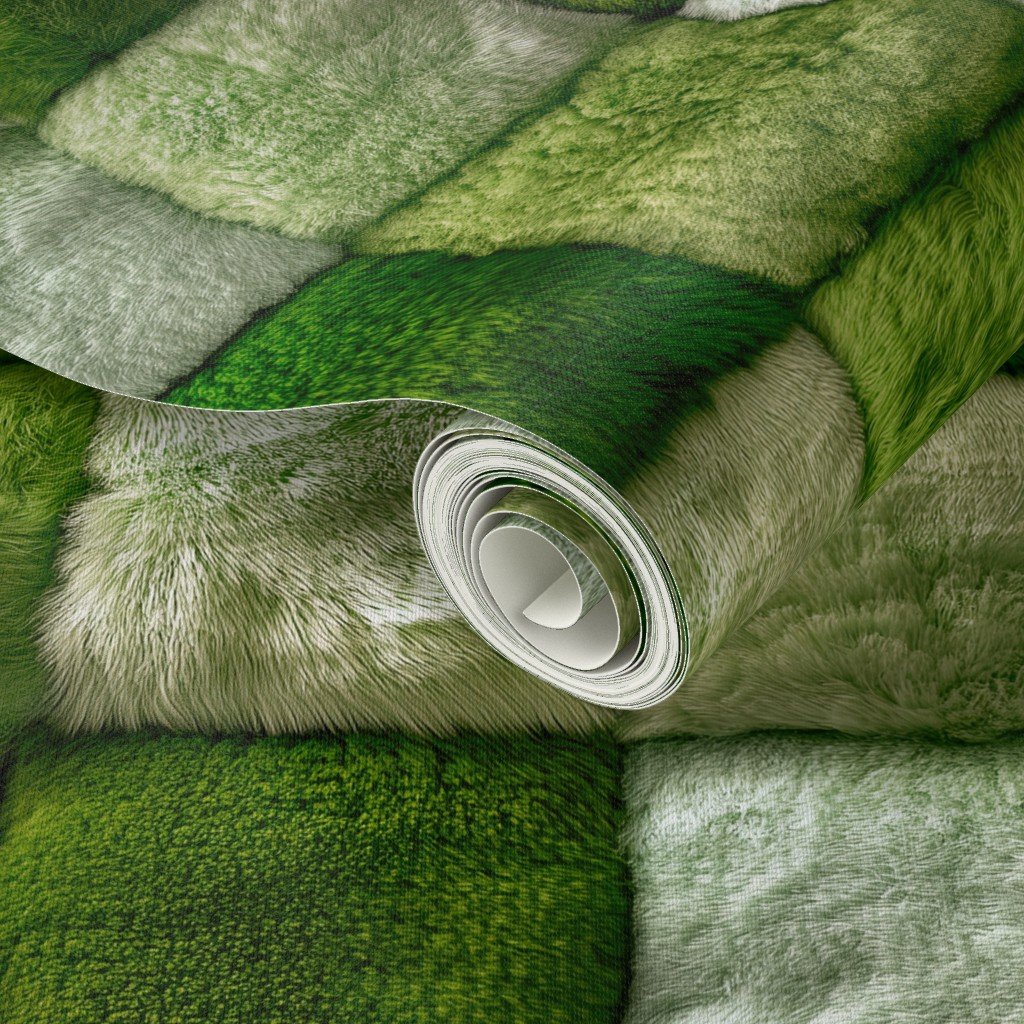 Large Lime and Sage Faux Fur Patchwork Fabric – Luxurious Plush Texture Wallpaper
