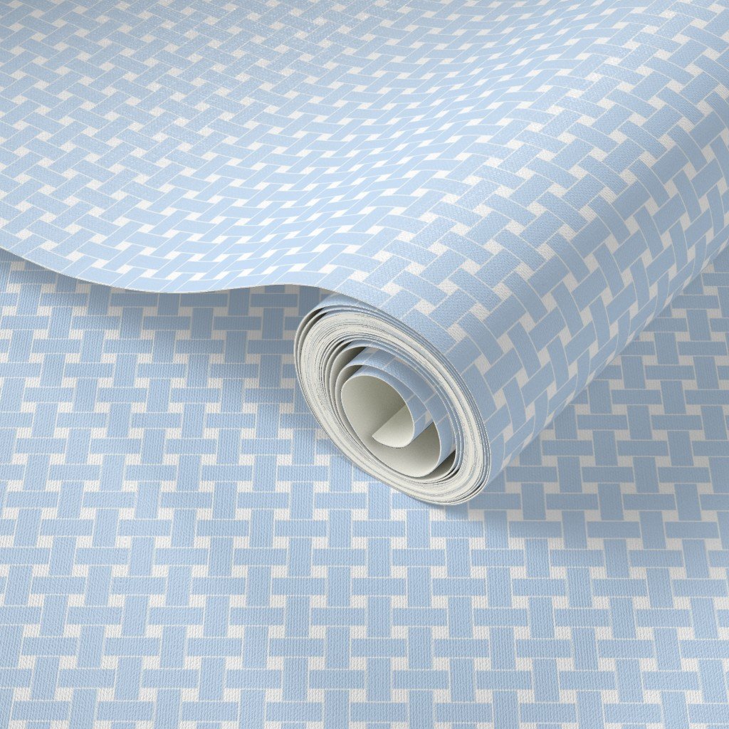 This large-scale Pastel Baby Blue cane weave pattern is designed for gentle, calming nursery spaces. The soft blue grid over white brings a clean, airy structure that works beautifully for baby boy rooms, crib bumpers, curtains, or statement walls.