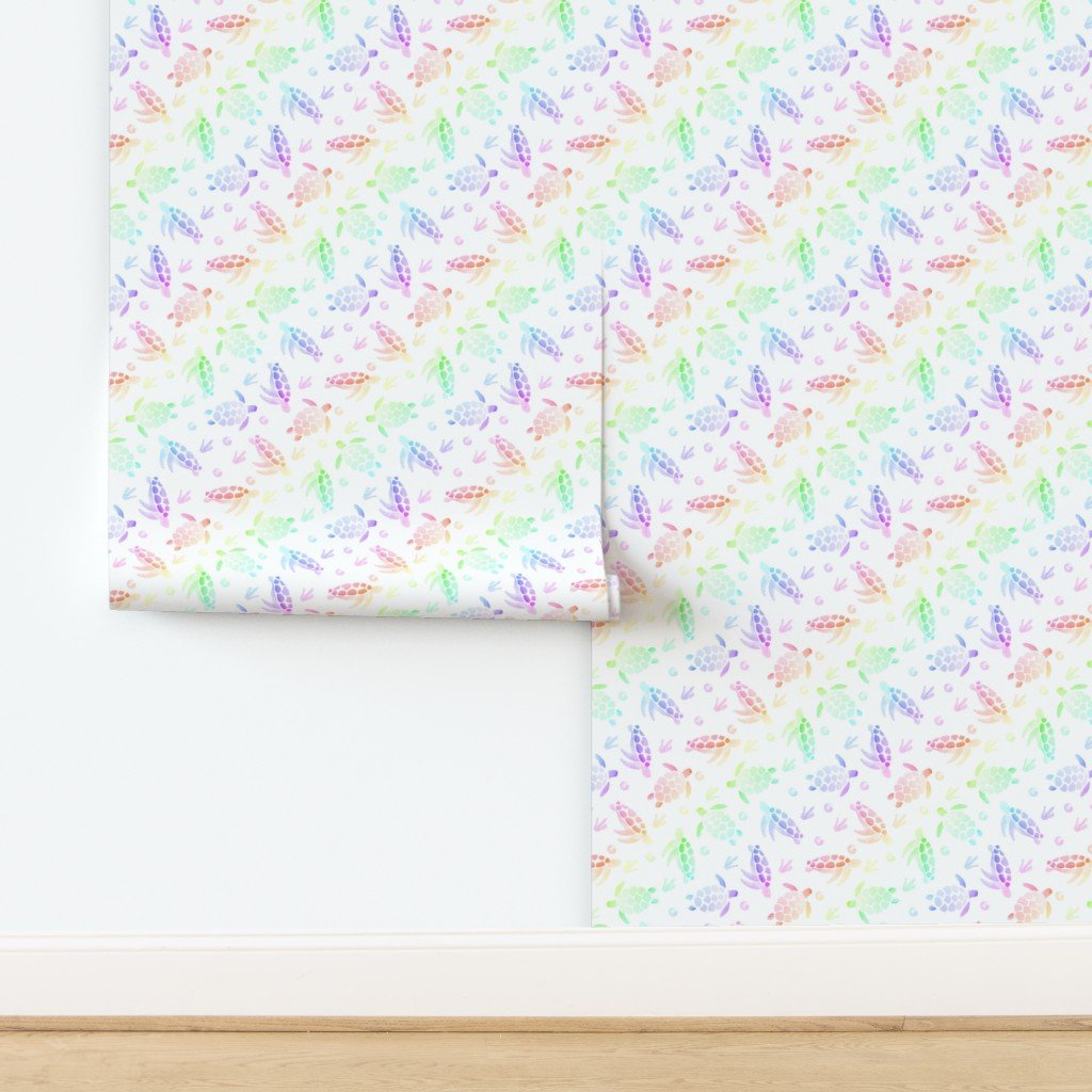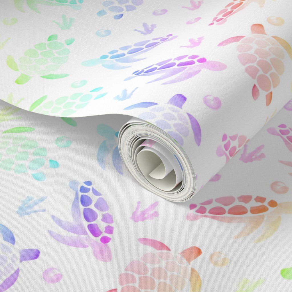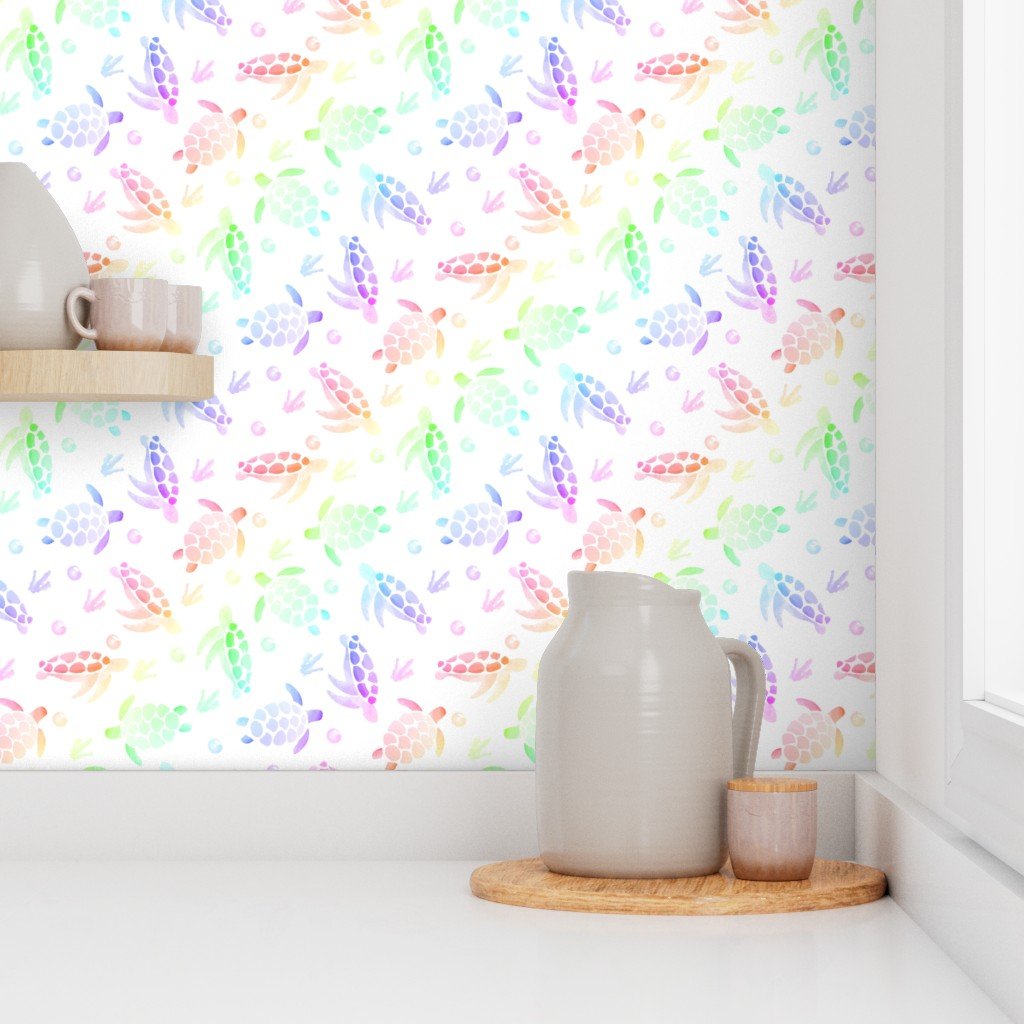 Adorable large watercolor sea turtles in ombre shaded rainbow on the diagonal