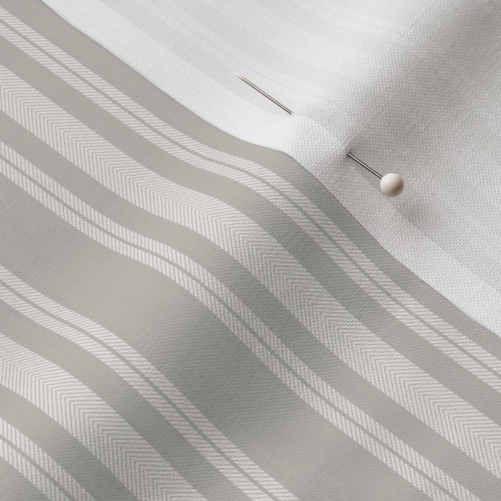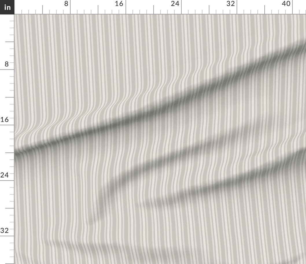 Fabric in Light Dove Grey Thin Ticking Stripes on Warm Beige Fabric