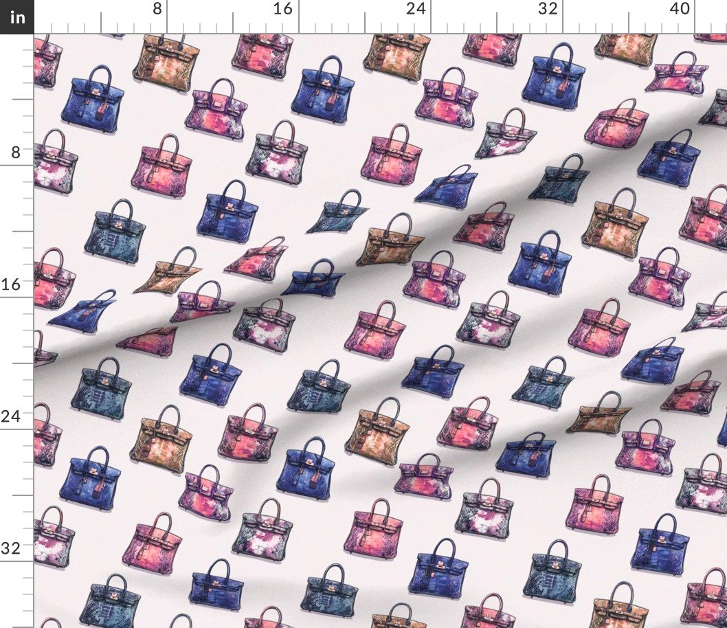 Fabric in Luxury Handbag Motif in Warm Jewel Tones