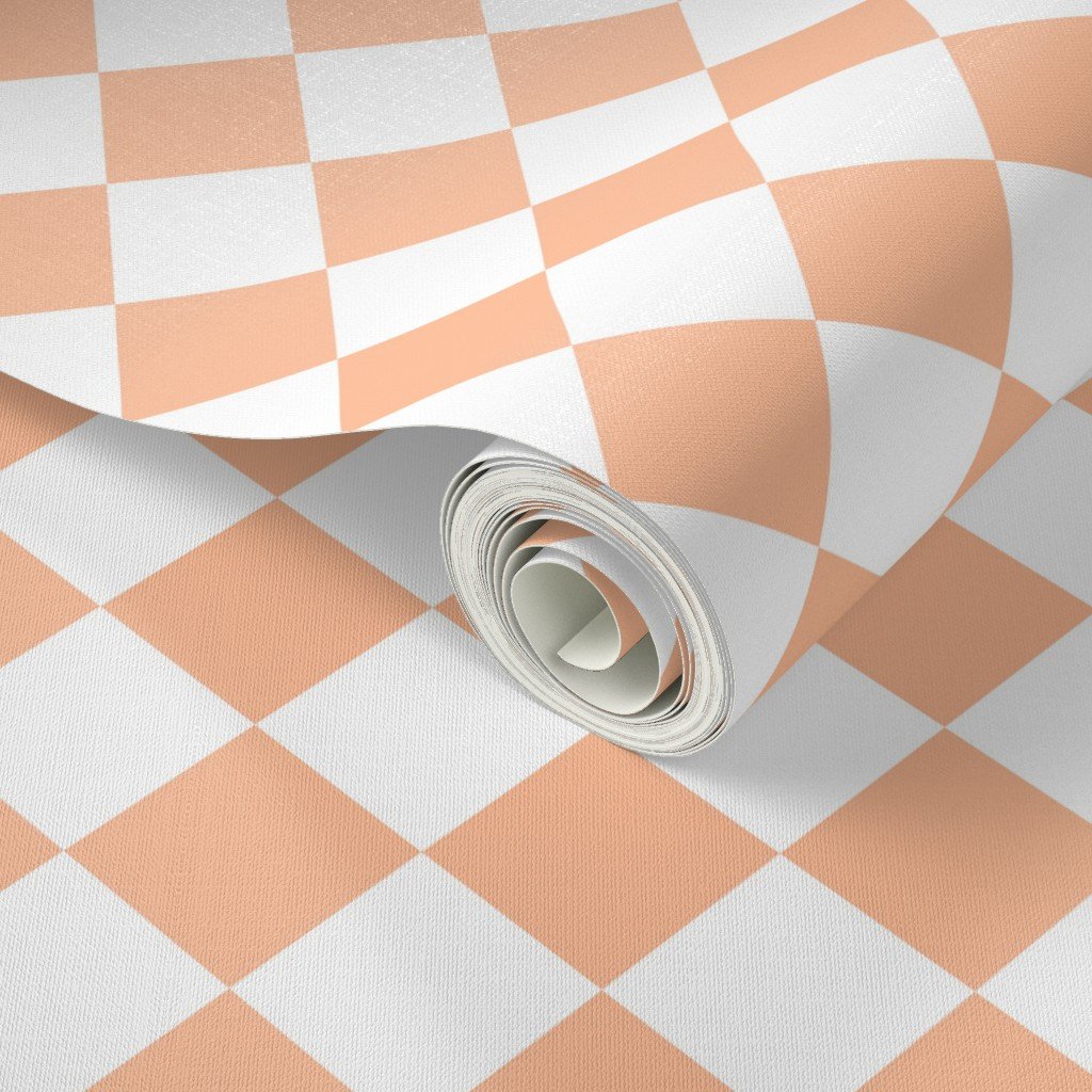 Peach Fuzz Color of the Year 2024 and medium white diagonal diamond checks expresses a nurturing, embracing and velvety peach tone to soothe mind, bod