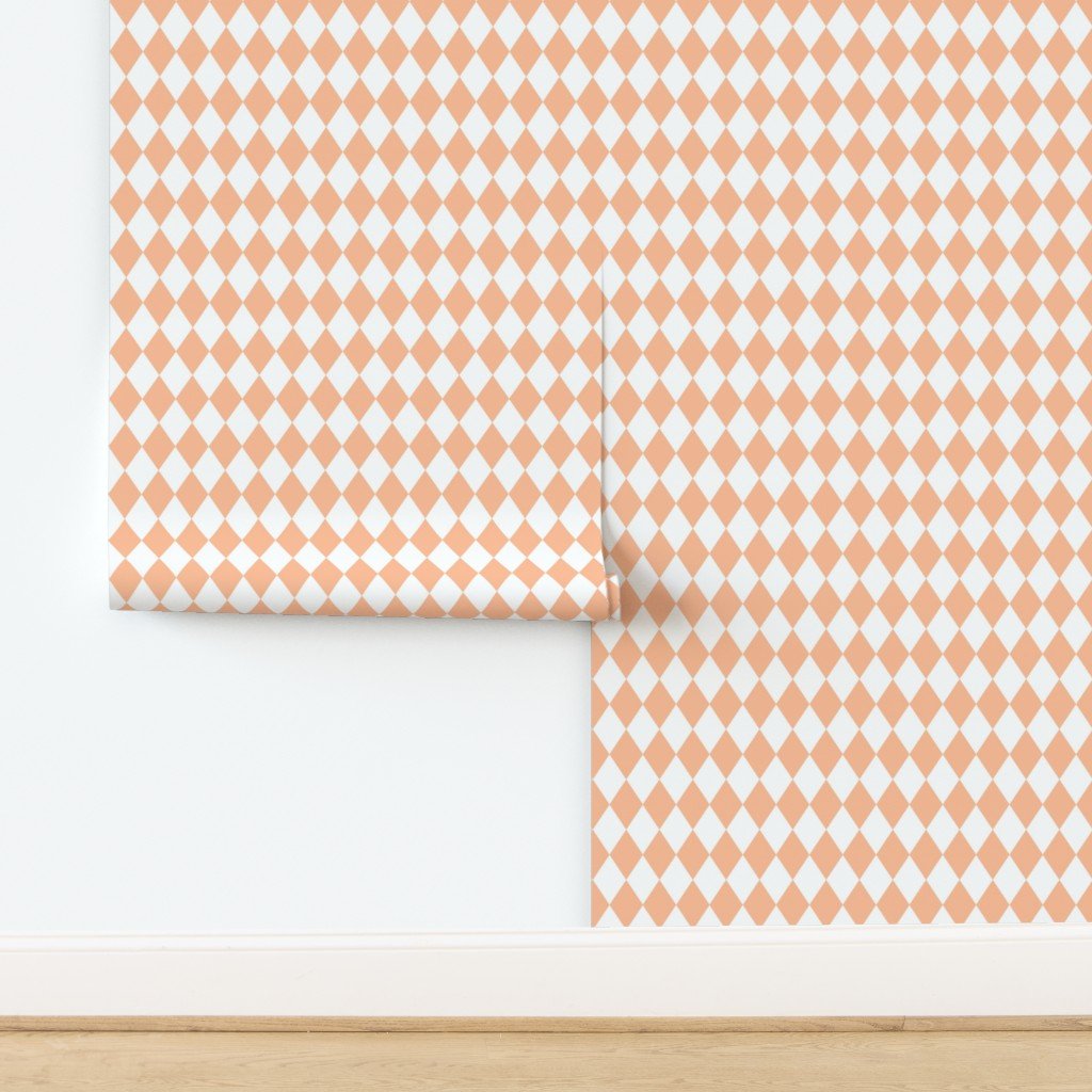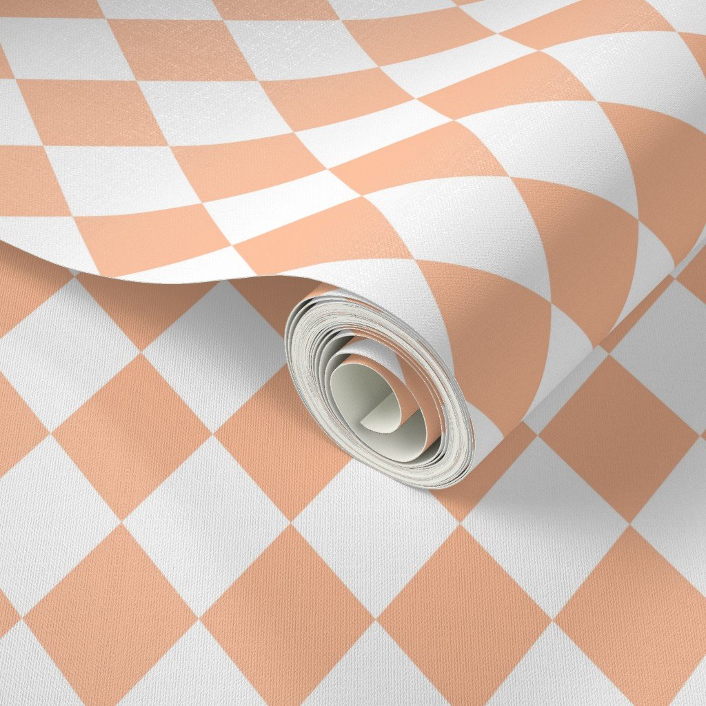 Peach Fuzz Color of the Year 2024 and medium white diamond checks expresses a nurturing, embracing and velvety peach tone to soothe mind, body, and so
