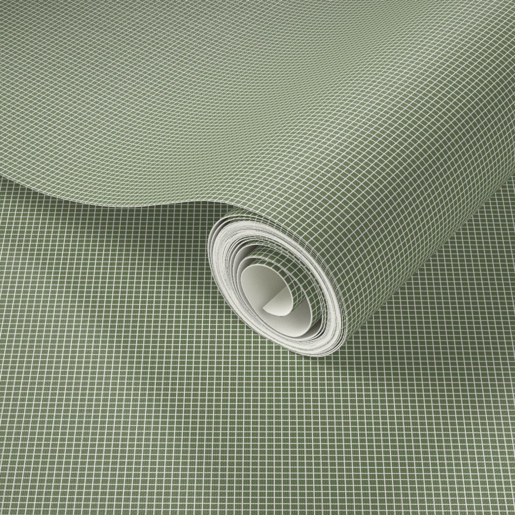 Micro Grid Line Pattern with White Lines on Olive Green Wallpaper