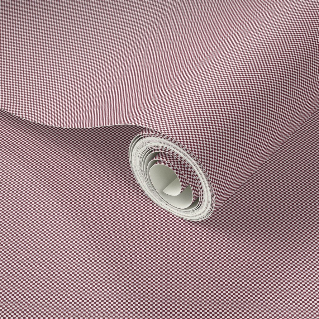 Micro White and Cranberry Shepherds Check Antique Vintage Pattern Wallpaper