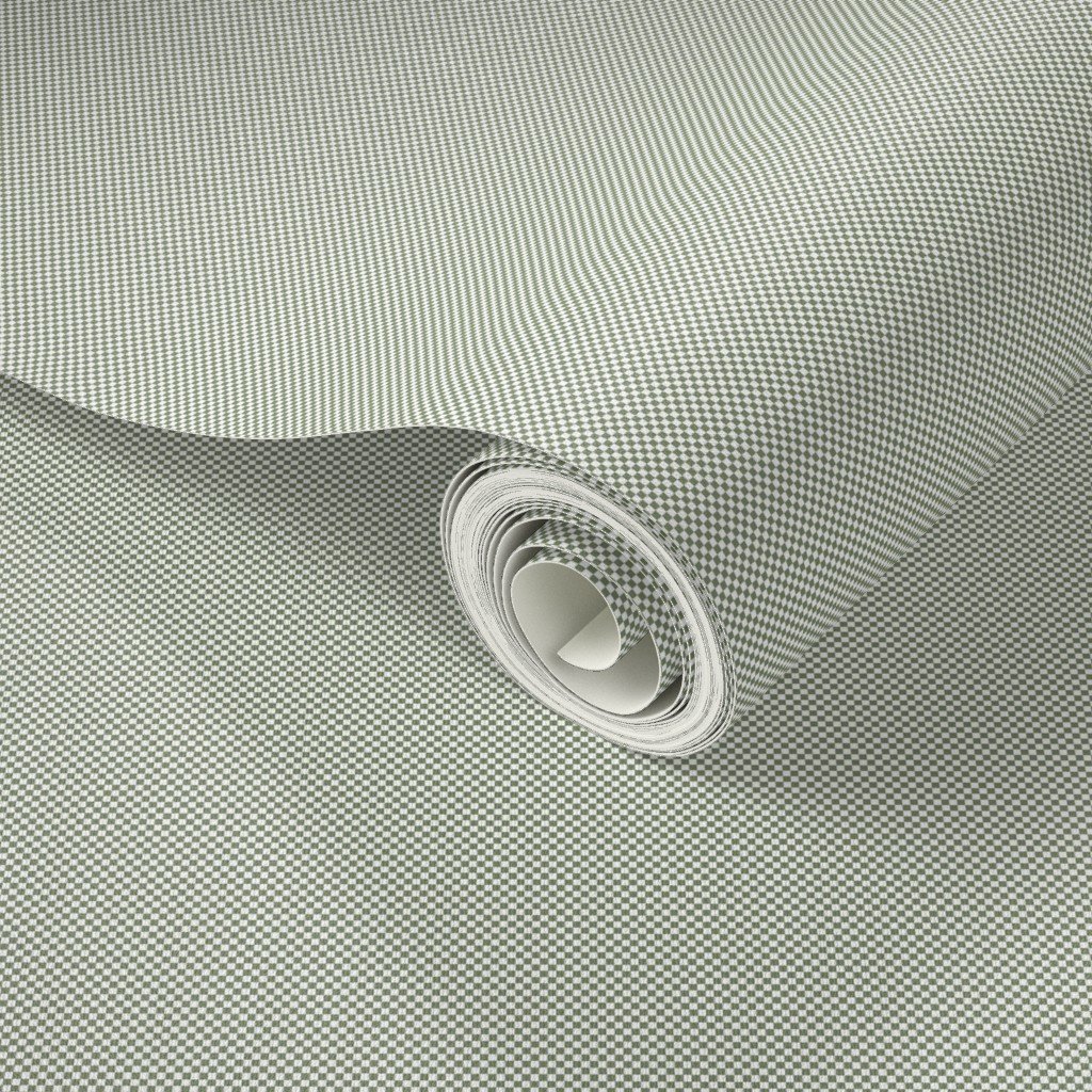 Micro White and Moss Gray Green Shepherds Check Antique Vintage Pattern Wallpaper