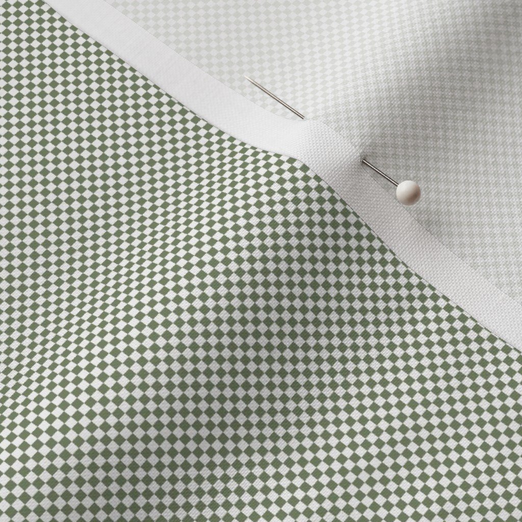 White and moss gray green Shepherds check with a fine micro grid that reads as a soft antique neutral texture Ideal for classic interiors with a muted natural vintage feel
