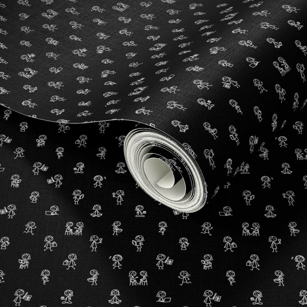 This mini white-on-black version of our playful stick figure girls pattern is bold, fun, and perfect for statement details. At just ½ inch tall, each doodle adds charm to accessories, pet wear, pouches, or planner inserts with a modern graphic pop.