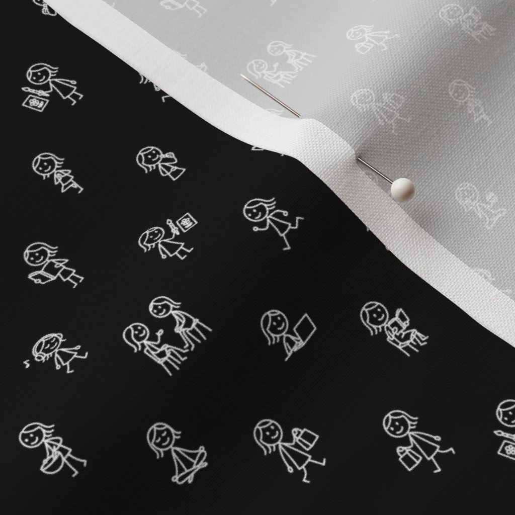 This mini white-on-black version of our playful stick figure girls pattern is bold, fun, and perfect for statement details. At just ½ inch tall, each doodle adds charm to accessories, pet wear, pouches, or planner inserts with a modern graphic pop.