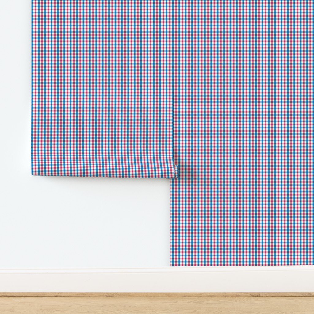 Mini USA Gingham Check Fabric, a timeless design featuring the iconic red, white, and blue colors.