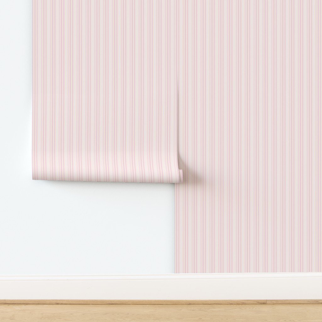 This mini ticking stripe in soft baby pink tones on cream is perfect for newborn essentials, nursery accents, and sweet sewing projects.