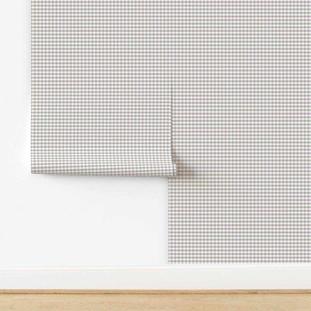 Misty Taupe Gingham Check Plaid Pattern Wallpaper