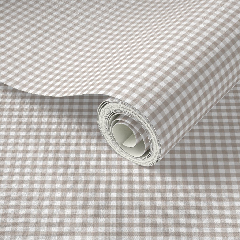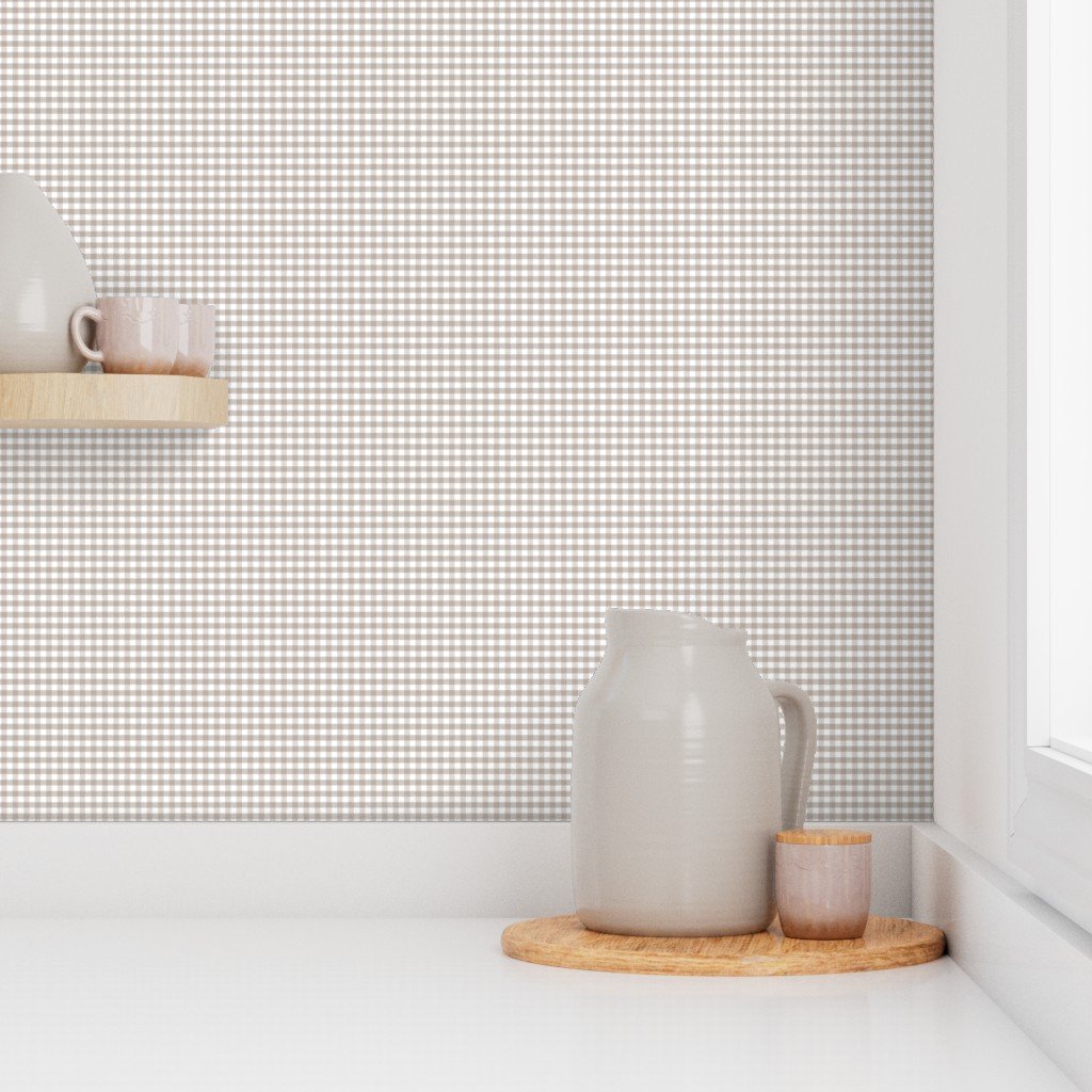 A soft taupe and white gingham pattern with fine-scale checks and a misty neutral tone.