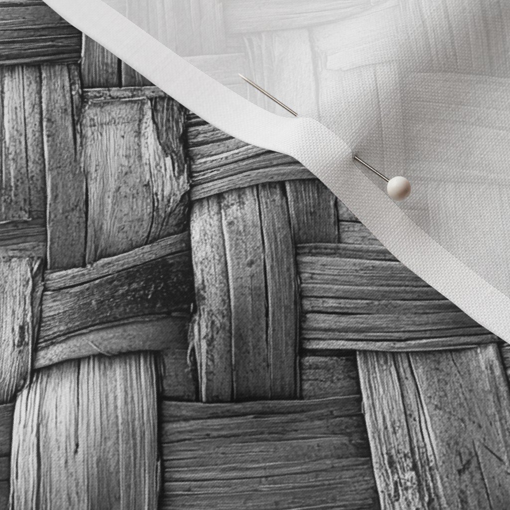 Monochrome Woven Wood Texture.’ This grayscale depiction enhances the intricate details of traditional woven patterns.SpecificationsFabric content: 100% CottonPrinted width: 42 inchesWeight: 4.4 oz/yd²Opacity: OpaqueConstruction: Plain WeaveShrinkage: 5-6% length x 2-3% widthThread count: 120Performance RatingsWyzenbeek (cotton duck abradant): 30,000 double rubs (ASTM D1457-13)Martindale: 20,000 cycles (ASTM 4966-22)Crocking dry (1 severe – 5 no color transfer): Exceeds 3 (AATCC TM 8)Crocking wet (1 severe – 5 no color transfer): Exceeds 3.5 (AATCC TM 8)Pilling (1 severe – 5 none): 4.5Note or Country of OriginCountry: Woven in IndonesiaPrinting: Digitally printed in the USA with water-based inksFabric backing: The backside of the fabric will be unprinted