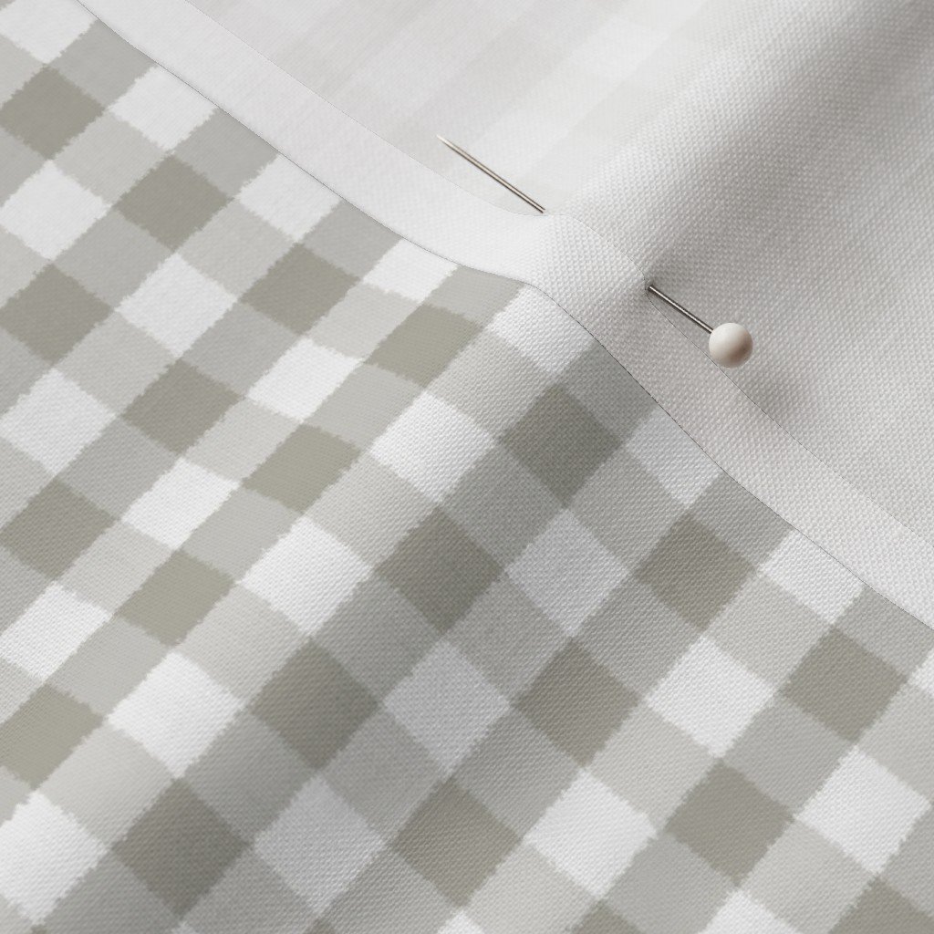 Classic gingham in mushroom grey and organic neutral white brings cozy balance to fabric crafts cushions baby bedding kitchen accents and vintage decor with a natural rustic feel perfect for cottage interiors and warm calming modern country spaces