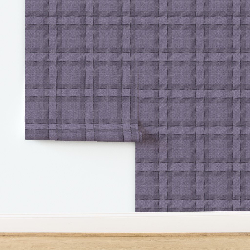 A cozy wool-style plaid in muted plum and lavender, perfect for rustic, vintage, or traditional textile projects.